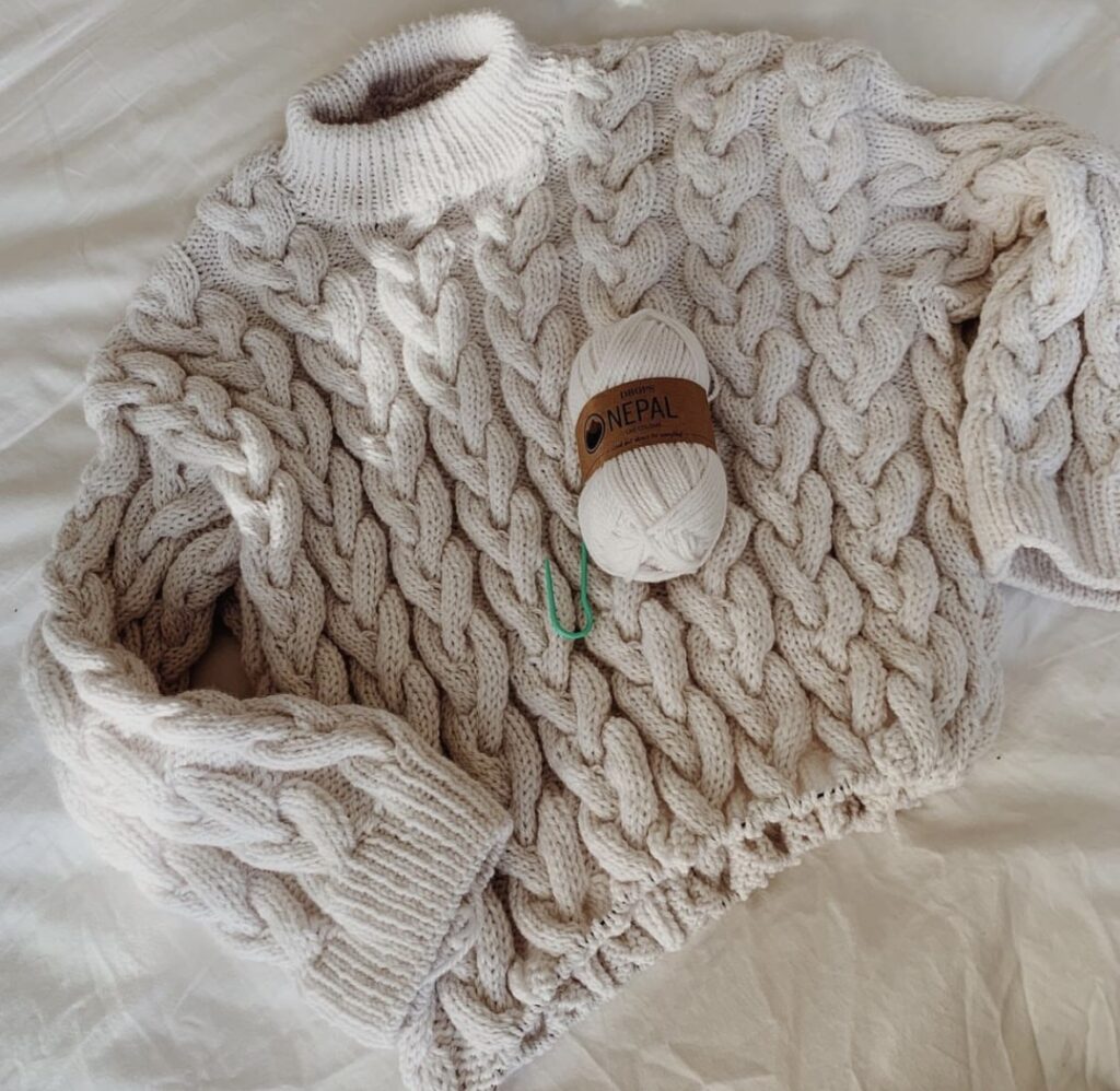 My favourite things knitwear’s sweater no.9 is definitely a fan favourite! It’s classic heavy knit with a turtleneck allows for the perfect autum/winter sweater. Although it has a thick and relaxed fit, it is still an incredibly flattering sweater that suits every shape and size. You have the option to knit it in a regular or cropped length, currently very much in style. It is knitted with a combination of merino and mohair yarn, perfect for a more casual and cozy sweater. Another simple pattern which is great for beginners, this can be found here.